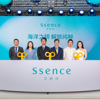 6月29日,貝親在上海黃浦江畔推出全新護膚品牌Ssence。Ssence品牌CEO矢野亮先生(左三)、首席研發(fā)官賀來健博士(右三)、首席品牌官葉芳瑩女士(左二)、首席銷售官黃...