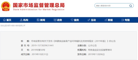 依據(jù)《中華人民共和國食品安全法》《保健食品注冊與備案管理辦法》等有關法律法規(guī),市場監(jiān)管總局制定了《保健食品備案產(chǎn)品可用輔料及其使用規(guī)定(2019年版)》,自2019年12月1日...