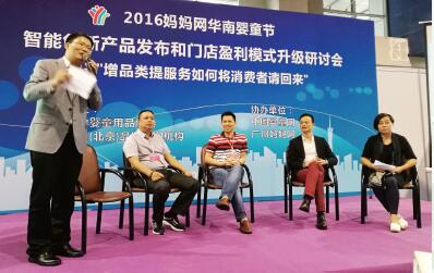 2016媽媽網(wǎng)“華南嬰童節(jié)展會期間舉辦了“智能創(chuàng)新產(chǎn)品發(fā)布和門店盈利模式升級研討會”,——“增品類提服務(wù)...