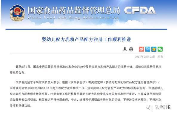 國家食品藥品監(jiān)督管理局官方網(wǎng)站在8月3日晚上公布批準(zhǔn)22家企業(yè)的89個(gè)嬰幼兒配方乳粉產(chǎn)品配方的注冊申請,其中包含伊利、蒙牛、貝因美、飛鶴、君樂寶、健合集團(tuán)等17家國內(nèi)企業(yè),以及...