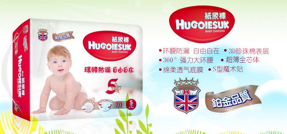 HUGOIESUK嬰兒紙尿褲是福建省百順衛(wèi)生用品有限公司旗下主打產(chǎn)品之一,在材質的選擇上,不惜成本采用進口高分子強吸芯體,環(huán)保紙漿,來確保達到國際標準,保證產(chǎn)品品質。HUGOIES...