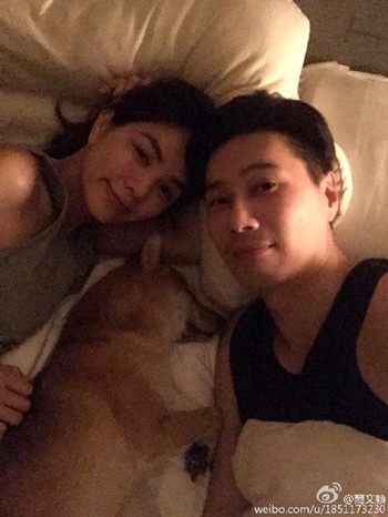 昨晚,Ella的老公在微博中曬出夫妻倆“床照”,狗女兒布丁夾在兩人中間,一家人的畫面看來相當(dāng)有愛。并在文中寫到:“喂狗糧時(shí)間、拉仇恨時(shí)間...