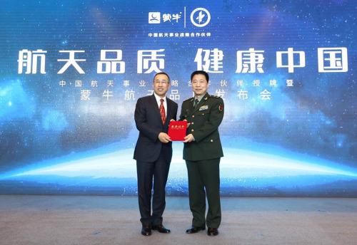 中國載人航天工程辦公室副主任楊利偉和中國航天基金會秘書長張玉江授予蒙牛集團“中國航天事業(yè)戰(zhàn)略合作伙伴”榮譽證書及牌匾。這標志著連續(xù)14年助力中國航天事業(yè)...