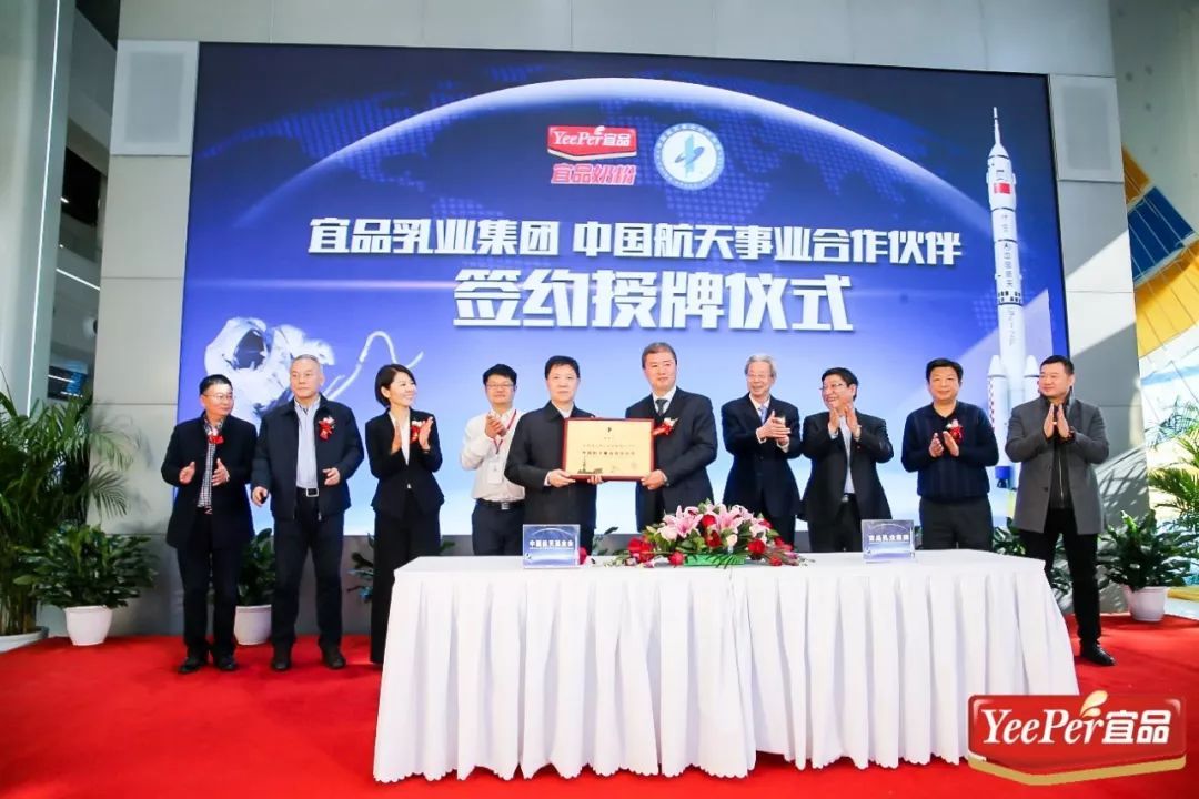 宜品乳業(yè)“中國航天事業(yè)合作伙伴”簽約授牌儀式在北京航天城舉行! x式上,吳志堅(jiān)理事長代表中國航天授予宜品乳業(yè)集團(tuán)董事長牟善波“中國航天事業(yè)...