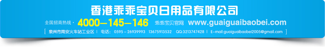 現(xiàn)公司旗下“乖乖寶貝”及“多貝爽”品牌火熱招商中,愿與您攜手共同發(fā)展,共創(chuàng)輝煌,把高品質(zhì)的產(chǎn)品帶給億萬(wàn)寶寶,讓他健康、舒適的茁壯成長(zhǎng),為全社會(huì)億萬(wàn)嬰幼兒的健康而努力奮斗。