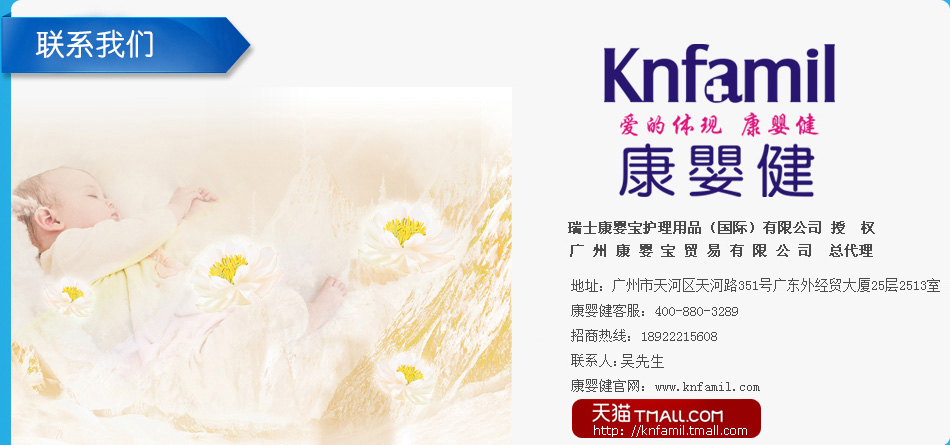 為了更好地發(fā)展化妝品事業(yè),推進中國日化行業(yè)與國際市場發(fā)展趨勢接軌。廣州康嬰寶貿易有限公司憑借雄厚的資金實力,高素質的運營團隊,先后與多家國際化妝品巨頭洽談合作。最終選定日本黛娜姿株式會社與瑞士康嬰寶護理用品(國際)有限公司進行合作,全面負責日本黛娜姿株式會社旗下品牌“美肌工場”及瑞士康嬰寶護理用品(國際)有限公司旗下品牌“康嬰健”在中國市場的運作與推廣。