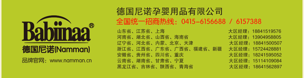 | 源自德國尼諾母嬰洗護研究中心的科學家尼諾(Namman),經(jīng)過數(shù)十年研究,從天然成份提取, 結(jié)合嬰兒肌膚及生理特點,創(chuàng)造出蘊含天然植物精華的幼適嬰兒護理系列產(chǎn)品和纖百瑞孕婦系列 化妝品。為了滿足更多消費者的需求,成立了德國尼諾(Namman)孕嬰用品有限公司,并以非凡 的品質(zhì)和理念服務(wù)全球消費者。 品牌優(yōu)勢 1、品牌定位:中高端的專業(yè)孕嬰洗護品牌 2、產(chǎn)品定位:高品質(zhì)、中價位 3、產(chǎn)品結(jié)構(gòu):15個系列,60多個單品 4、原料安全:產(chǎn)品采用歐盟生態(tài)有機化妝品(ECOCERT)機構(gòu)認證的有機天然植物原料和西班牙 Avda Ciudad de Almeria質(zhì)量控制部門認證的天然原料,所有化妝品原料具有MSDS 安全數(shù)據(jù)報告。 |