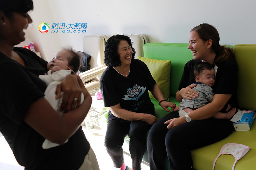 來自 騰訊大燕網(wǎng) 中國(guó)嬰童招商網(wǎng) 來自美國(guó)的21歲女孩Mary(右)和中國(guó)大媽們一起做義工,照顧在北京京都兒童醫(yī)院醫(yī)治的棄嬰。Mary今年8月剛剛來到北京,如果懂英語的同事不在,Mary和中國(guó)大媽義工們交流很多時(shí)候需要比劃猜測(cè)。這樣的交流不但沒有讓Mary的工作尷尬,反而給枯燥和辛苦的嬰幼兒護(hù)理工作增添了快樂和輕松感。在北京小水滴新生兒護(hù)理區(qū),Mary同義工志愿者們?yōu)榛疾〉墓聝杭袄Ь臣彝セ純禾峁┽t(yī)療救助、術(shù)前術(shù)后護(hù)理,并為困境家庭提供多方位支持及愈后回訪等服務(wù)工作。