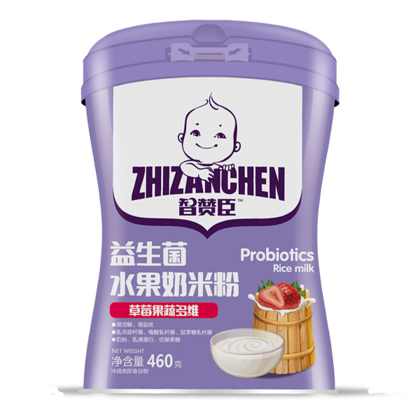 智贊臣益生菌水果奶米粉:易溶解易吸收;含有乳雙歧桿菌等多種益生菌、含有各種水果維生素,益生菌促進(jìn)營(yíng)養(yǎng)吸收