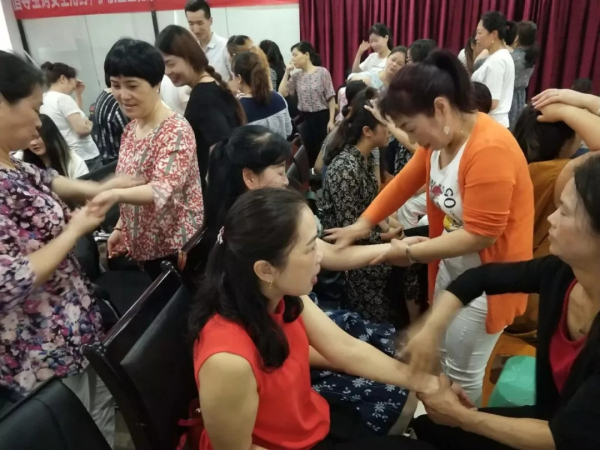 學(xué)員之間互相練習(xí)、感受小兒推拿手法