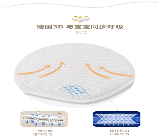 澳貝兒3D嬰童枕選用一顆可以清洗的芯,枕芯選用來(lái)自德國(guó)工藝的3D立體高分子睡眠材料,全面開(kāi)啟枕頭水洗新時(shí)代,枕芯可全身水洗,徹底去除螨蟲,防止螨蟲滋生,真正做到360度零死角,并且枕頭透氣性好,也稱為全水洗,會(huì)呼吸的枕頭。對(duì)于濕疹、過(guò)敏、頭部多汗的寶寶,澳貝兒3D嬰童枕是首選。 |
