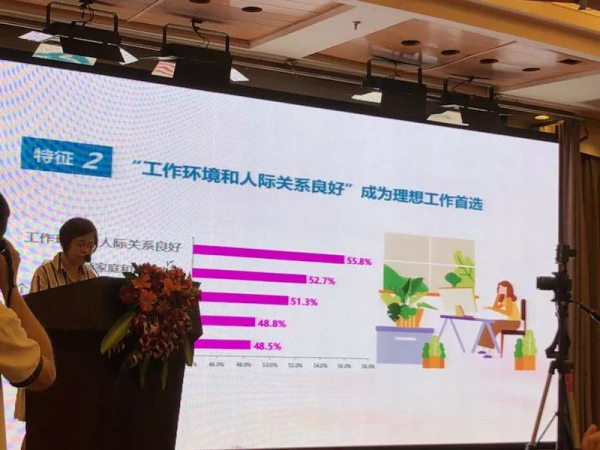 特征2:“工作環(huán)境和人際關(guān)系良好”成為理想工作首選。