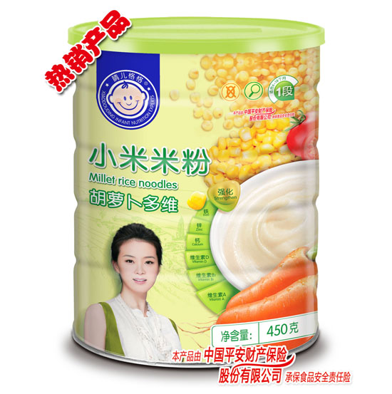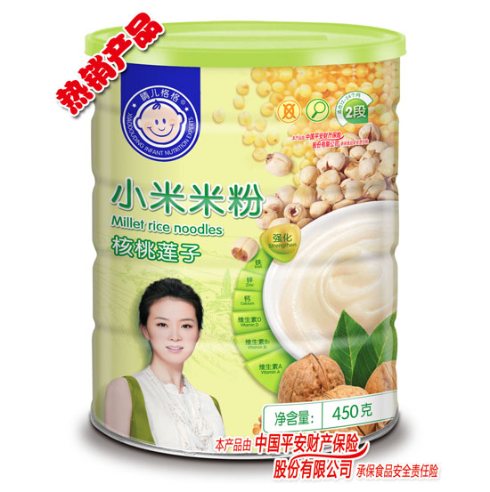 晴兒格格小米米粉營養(yǎng)優(yōu)化、原料優(yōu)化、配方優(yōu)化。米粉分段明確,滿足多個輔食添加階段寶寶營養(yǎng)需求,更有中國平安財產(chǎn)保險股份有限公司承保“食品安全責(zé)任險”,知名影星為它代言,是80%的中國媽媽,2000余家母嬰店的共同之選。 |