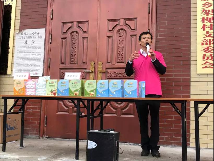 —尹主任問候了到來的村民們,并表示婦女兒童工作委員會對架枧村撫貧困人們的關(guān)心 ——李總對村民們的到來表示歡迎,并向大家介紹了“母嬰家庭健康促進(jìn)計(jì)劃”和此次帶來的愛心捐贈(zèng)物資