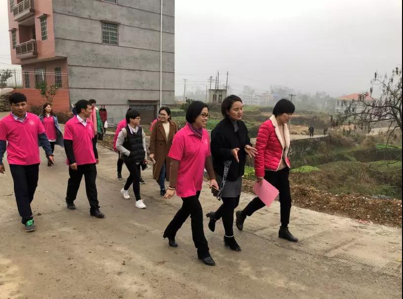 湖南省人民政府婦女兒童工作委員會辦公室主任尹素云女士、架枧村扶貧工作負(fù)責(zé)人金媛女士、知達(dá)醫(yī)藥總經(jīng)理李君佩女士及其他隨行人員來到架枧村與村支書黃民權(quán)先生及村主任黃軍剛先生共同了解當(dāng)?shù)氐那闆r。
