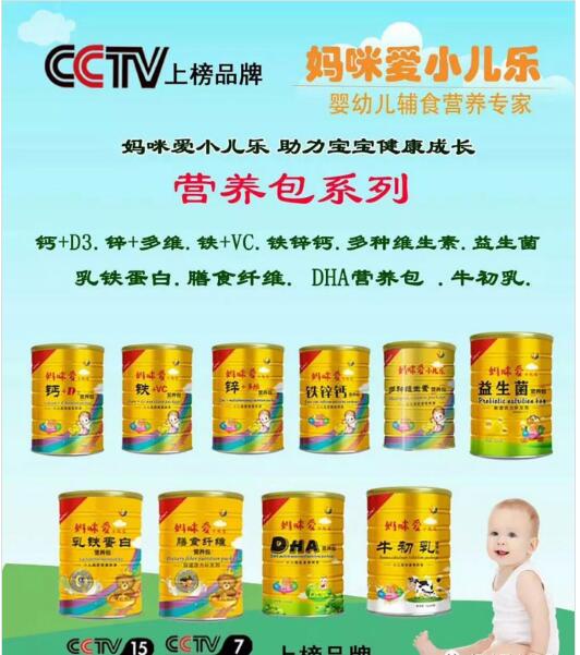 推薦產(chǎn)品:媽咪愛小兒樂營(yíng)養(yǎng)包 媽咪愛小兒樂營(yíng)養(yǎng)包 央視廣告品牌,口感好,含量高,種類齊全,在全國(guó)多家合作母嬰店上貨熱賣,終端動(dòng)銷十分火爆,銷量大,口碑高,受到消費(fèi)者一致認(rèn)可和喜歡。媽咪愛小兒樂,讓媽媽喜愛!寶寶快樂!