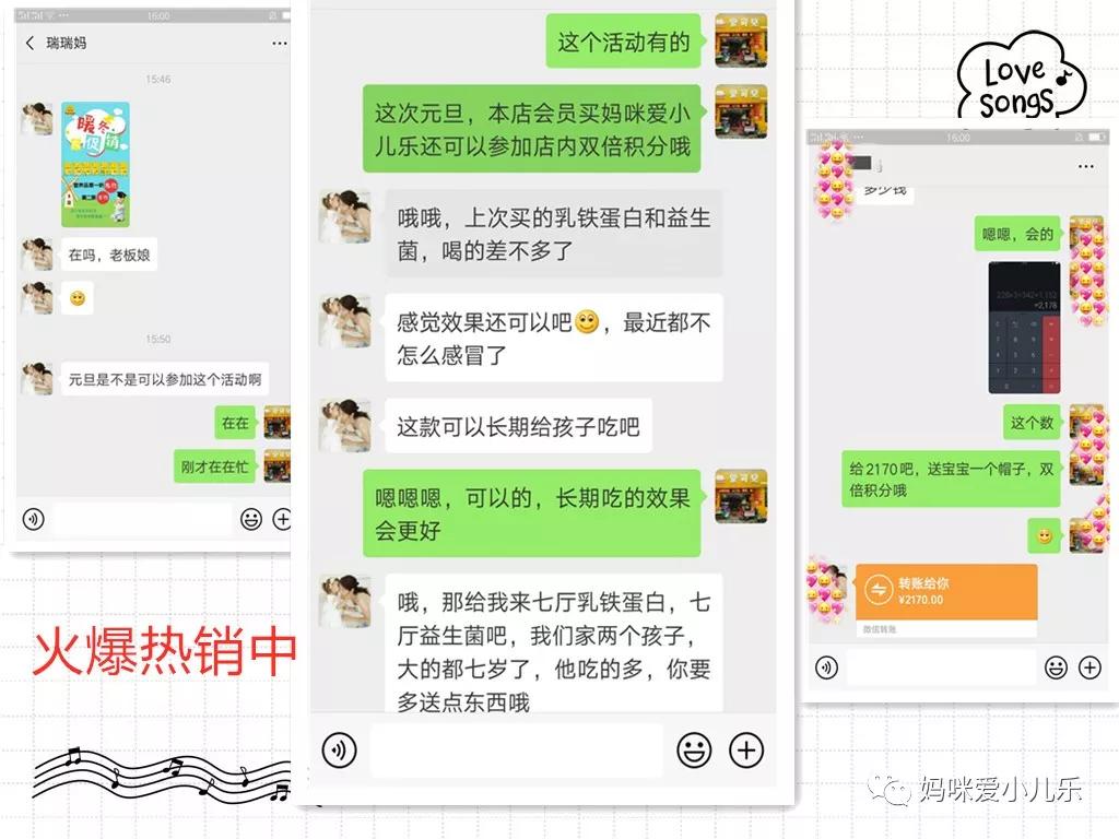 據(jù)多個地區(qū)母嬰店透露,媽咪愛小兒樂營養(yǎng)品在店內(nèi)賣的好,消費者幾乎都是成4、5盒的購買,客單能達千元。2019年1月1日,喜迎元旦,讓利大促,2019年千家門店一起開門紅!更有甚者,一家母嬰店的20分鐘時間,賣出乳鐵蛋白+益生菌一共2萬多的產(chǎn)品,廠方都為之驚嘆。