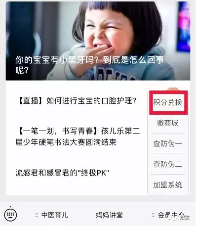進(jìn)入孩兒樂(lè)公眾號(hào),點(diǎn)擊會(huì)員中心—積分兌換,進(jìn)入積分商城首頁(yè)