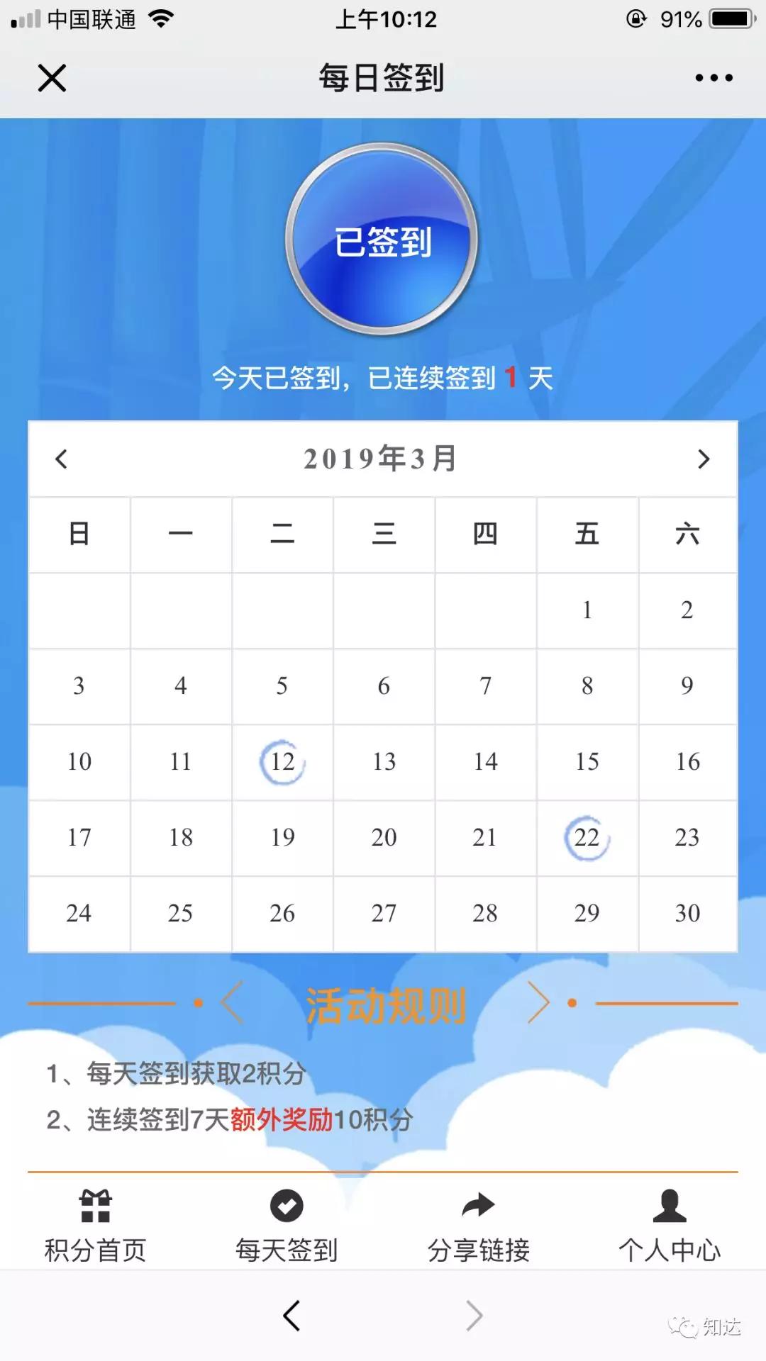 點(diǎn)擊【每日簽到】進(jìn)入以上界面,每天簽到也可獲得相應(yīng)積分。 |