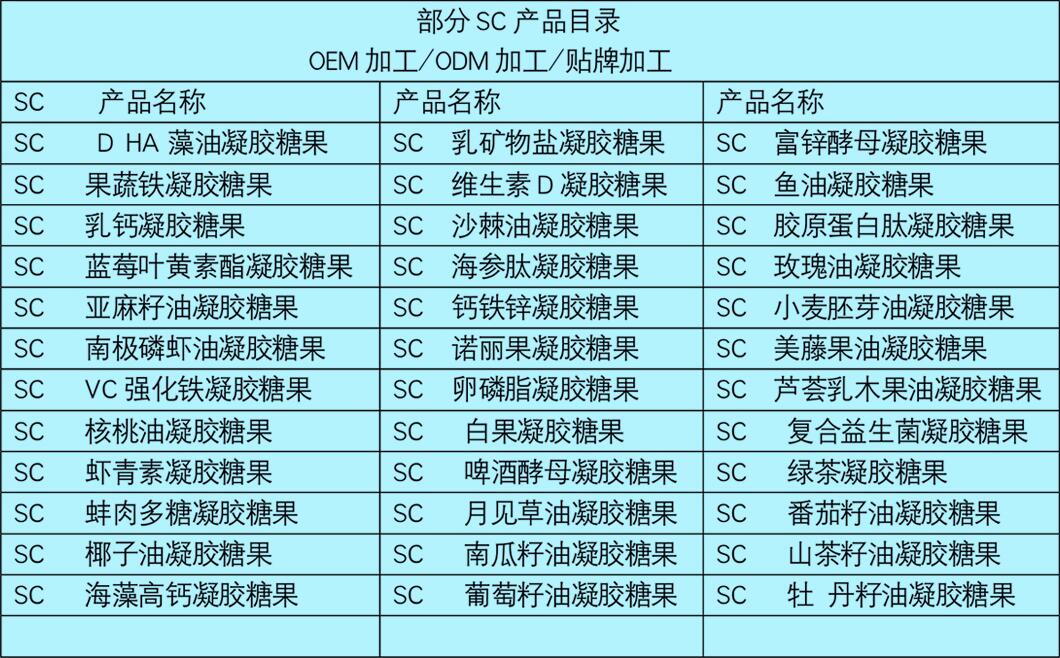 公司擁有5000平方米的標(biāo)準(zhǔn)化凈化車間,主營凝膠糖果OEM/ODM加工、貼牌代加工與出口等。擁有多條凝膠糖果、軟膠囊專業(yè)生產(chǎn)線,嚴(yán)格按照GMP要求進(jìn)行生產(chǎn)制作。獲得山東省市場監(jiān)督管理局核發(fā)的《食品生產(chǎn)許可證》(SC證書)。公司目前多個注冊商標(biāo)產(chǎn)品,遠(yuǎn)銷國內(nèi)及歐洲、美洲等地。