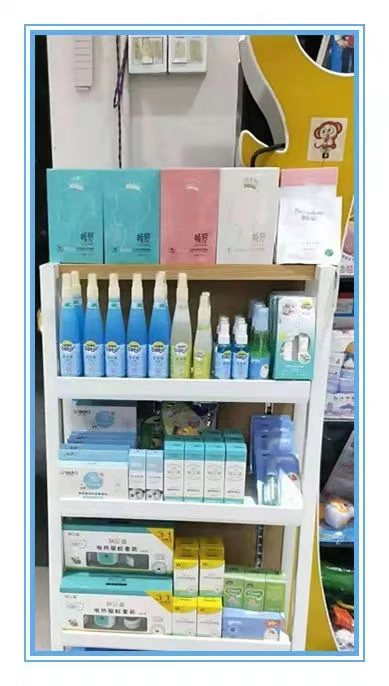 除了這兩處,也有部分店老板選擇把暢愛面膜放在收銀臺,媽媽們在進店的時候第一眼就會看到這個地方,付款的時候也會在這個地方停留,大大加深了與消費者接觸的就會,誰能不一眼就被吸引到呢?