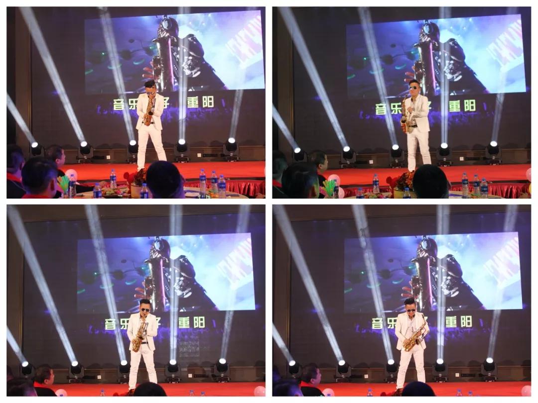 2019地市級優(yōu)秀戰(zhàn)略合作伙伴頒獎(jiǎng) 第一輪頒獎(jiǎng)結(jié)束后,著名薩克斯演奏家重陽的節(jié)目終于在大家的期盼中開始了,變化無窮的節(jié)奏,富有戲劇性的音色,既激烈狂燥又安靜深沉,既滑稽又富于傷感。當(dāng)薩克斯聲響起,答案就是唯一,重陽的節(jié)目將整場晚會的熱情點(diǎn)燃了。