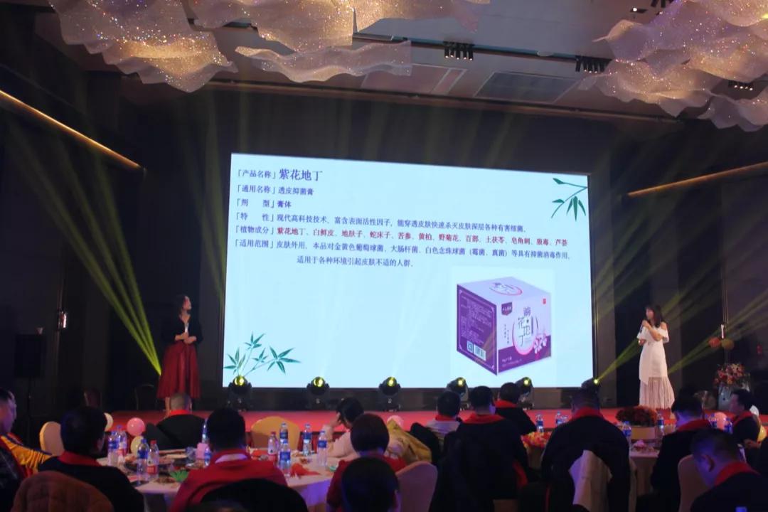 姜總演唱《喜歡你》 隨后,學(xué)術(shù)部代表集團(tuán)發(fā)布了2020年爆款新品“紫花地丁透皮抑菌膏”,兩位老師用生動(dòng)故事講解了紫花地丁的功效,對皮膚臨床常見病進(jìn)行了專業(yè)的講解。