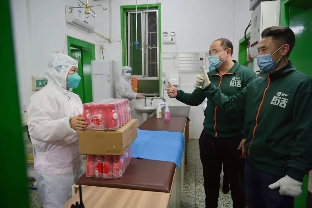 于是,宋春慶就和送奶隊(duì)伍把酸奶分別裝進(jìn)四輛小貨車。隨著工作量加大,送奶隊(duì)伍也從五個(gè)人變成了十三個(gè)人,并將600件酸奶送到了武漢市第一人民醫(yī)院。 隨著后來蒙牛捐贈(zèng)力度不斷加大,武漢工廠運(yùn)輸一線的員工及合作伙伴也開始全天候運(yùn)轉(zhuǎn)起來,力爭將物資盡快送到一線。1月27日,特侖蘇牛奶送達(dá)火神山醫(yī)院建設(shè)工地現(xiàn)場,1月28日蒙牛乳制品送達(dá)武漢15家醫(yī)院。 和蒙牛一同支持抗擊疫情的還有熱心的經(jīng)銷商。