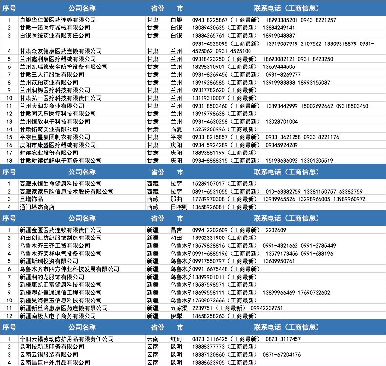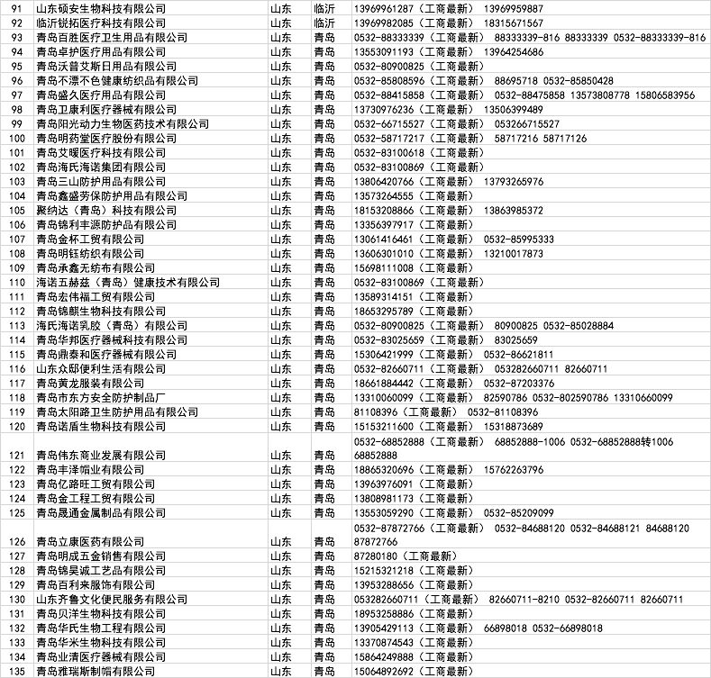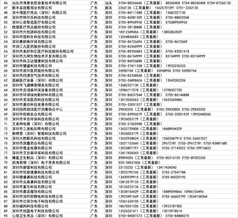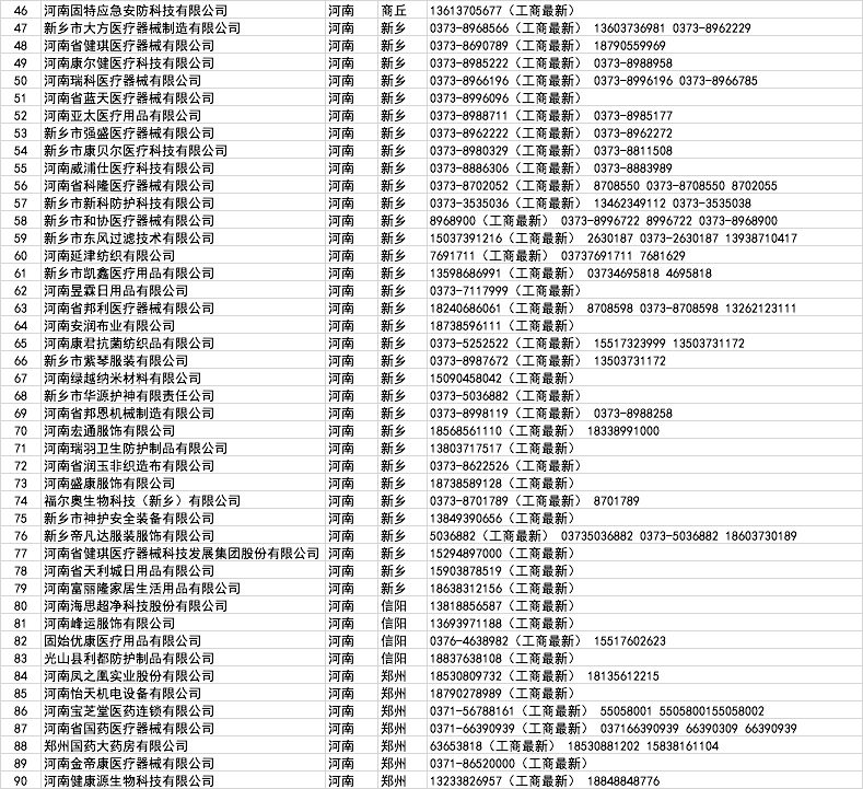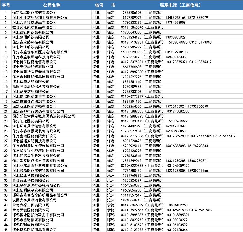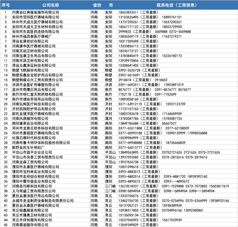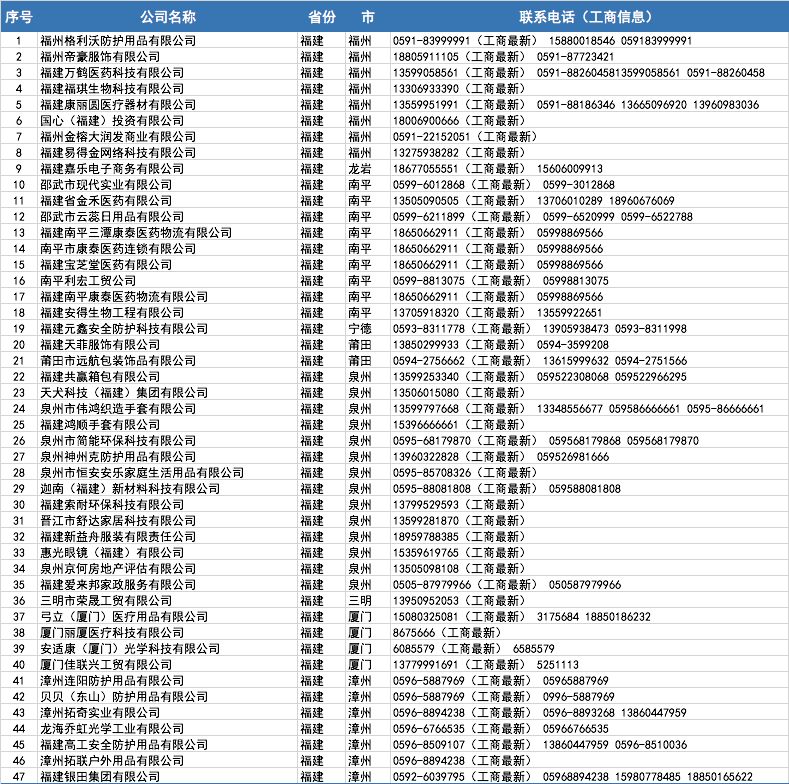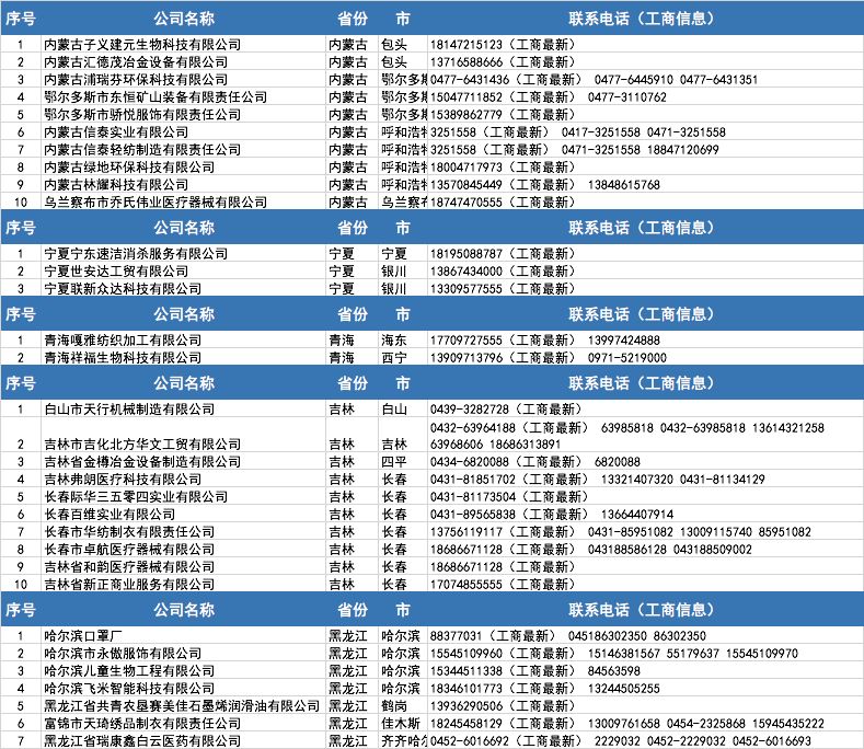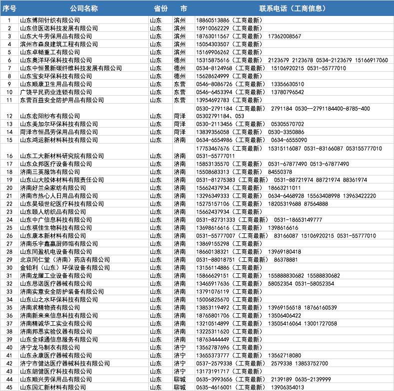 | 全國(guó)各省市口罩生產(chǎn)商聯(lián)系方式 |