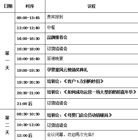 活動(dòng)報(bào)名及福利 報(bào)名熱線: 何璐:17805808091(山東) 宋超:15858117694(河南) 姚杏全:15267494563(安徽) 報(bào)名要求: 僅限母嬰連鎖門店、代理商、老板、管理層等參加 報(bào)名成功即可獲得福利: 1:主辦方提供精美禮品一份 2:豪華酒店免費(fèi)住宿和餐飲名額 3:現(xiàn)場(chǎng)參與價(jià)值5000元現(xiàn)金抽獎(jiǎng) 4:價(jià)值12888元講師課程免費(fèi)聽 |