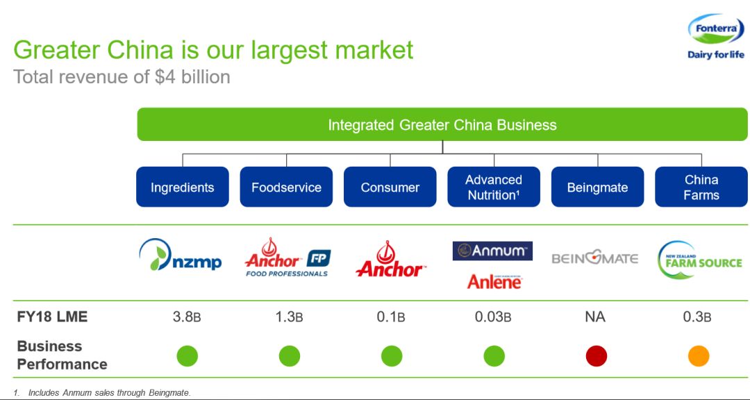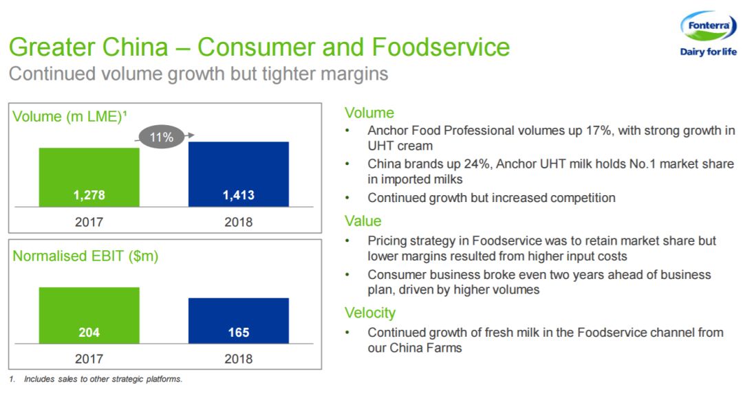 根據(jù)業(yè)績演示材料顯示,2018財(cái)年,恒天然在大中華區(qū)的年收入為40億新西蘭元(約合人民幣180億元),現(xiàn)有近1700名員工及7個(gè)牧場。 首次收支平衡 值得注意的是,2018財(cái)年,恒天然在華消費(fèi)品牌業(yè)務(wù)首次實(shí)現(xiàn)收支平衡。小食代留意到,該公司提到,原計(jì)劃上市后要花七年實(shí)現(xiàn)這一目標(biāo),如今提前兩年實(shí)現(xiàn)。 恒天然新任首席執(zhí)行官M(fèi)iles Hurrell在財(cái)報(bào)指出,在該公司消費(fèi)品牌和餐飲服務(wù)的全球市場中,大中華區(qū)的增長最為強(qiáng)勁。