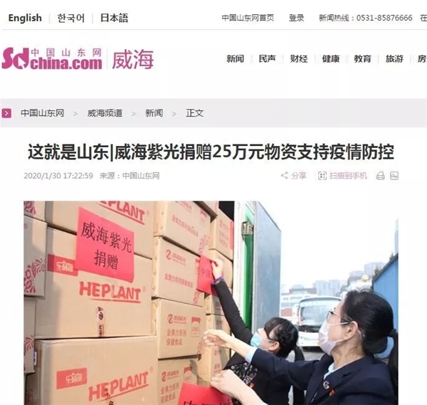 | 抗擊疫情,威海紫光在行動!武漢加油!中國加油! |
