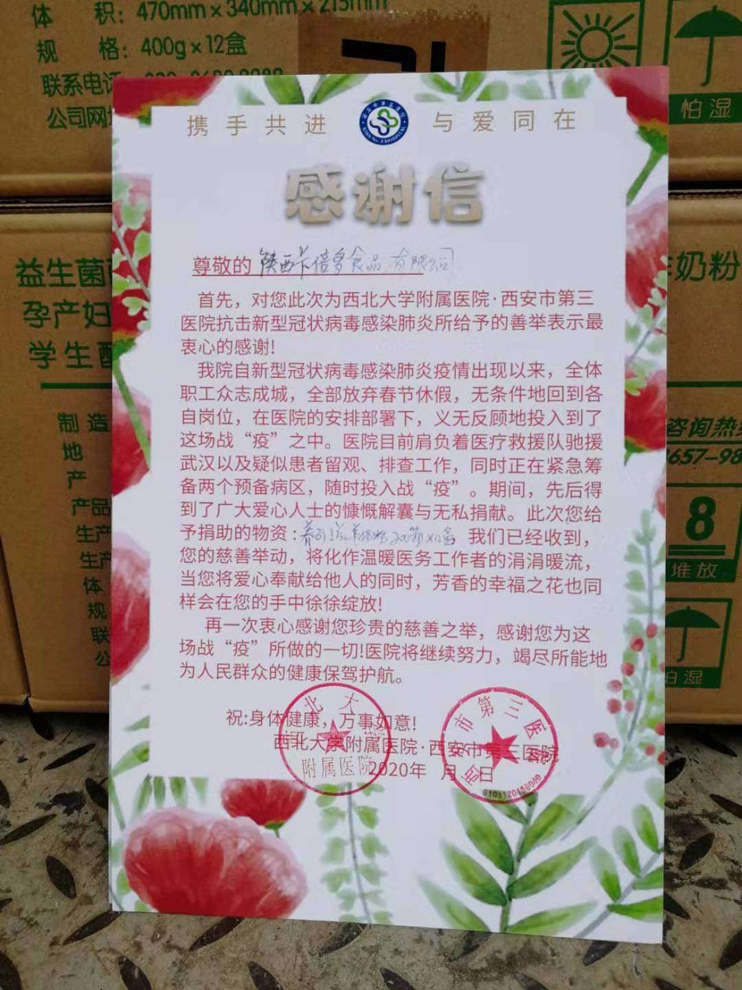 “新型冠狀病毒感染的肺炎疫情牽動(dòng)全國人民的心,我們一直在關(guān)注疫情的發(fā)展,此時(shí)的我們有責(zé)任為盡快戰(zhàn)勝疫情出一些綿薄之力。”卡倍多品牌負(fù)責(zé)人發(fā)自肺腑地說。此次,卡倍多羊奶粉向陜西省紅十字會(huì)捐贈(zèng)價(jià)值50萬元羊奶粉,助力醫(yī)護(hù)人員戰(zhàn)勝疫情,為奮斗在一線的白衣天使們提供更多后援保障工作。