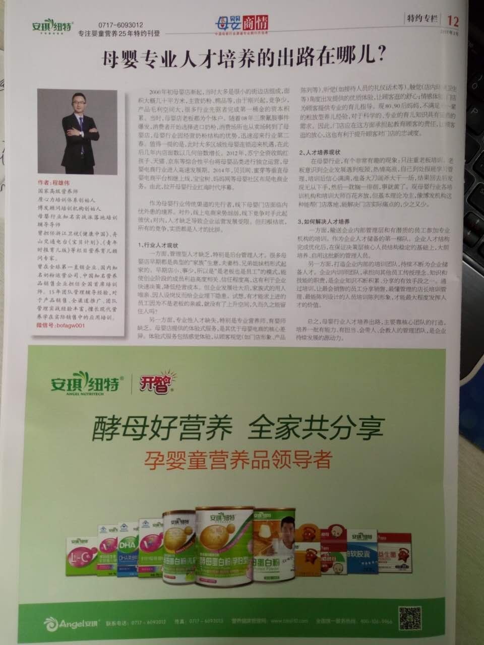 作者:程雄偉 國(guó)家高級(jí)營(yíng)養(yǎng)師 質(zhì)心力培訓(xùn)體系創(chuàng)始人 博發(fā)顧問培訓(xùn)機(jī)構(gòu)創(chuàng)始人 母嬰行業(yè)知名實(shí)戰(zhàn)派落地培訓(xùn)輔導(dǎo)導(dǎo)師 曾擔(dān)任浙江衛(wèi)視《健康中國(guó)》、舟山交通電臺(tái)《寶貝計(jì)劃》、《青年時(shí)報(bào)育兒版》等欄目營(yíng)養(yǎng)育兒顧問專家。 曾在全球第一直銷企業(yè)、國(guó)內(nèi)知名奶粉運(yùn)營(yíng)公司、中國(guó)知名營(yíng)養(yǎng)品銷售企業(yè)擔(dān)任全國(guó)首席培訓(xùn)師。
