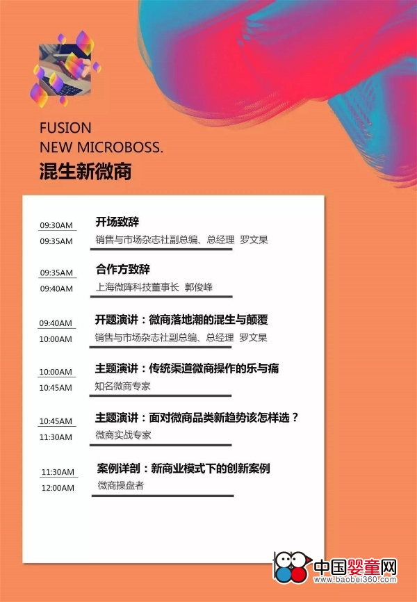 主 題 解 析 從2016年下半年開始,曾經(jīng)被一度詬病的微商在經(jīng)歷2015年的低谷后重生,企業(yè)化、規(guī)范化、職業(yè)化、體系化、規(guī)模化成為新微商追求的目標(biāo),大量優(yōu)質(zhì)的產(chǎn)品進(jìn)入微商渠道,越來越多的大企業(yè)進(jìn)入微商領(lǐng)域。 過去,我們說微商時,我們說的是面膜,說的是代購,說的是很多人避之唯恐不及的洪水猛獸,F(xiàn)在,我們說微商時,我們說的是一個新興渠道,說的是一種新商業(yè)模式,說的是極致產(chǎn)品。 同傳統(tǒng)分銷領(lǐng)域依靠經(jīng)銷商分銷不同,微商借助的是千千萬萬希望開創(chuàng)自己小事業(yè)大事業(yè)的個人的力量,微商賣的是產(chǎn)品,賣的也是個人能量、能力的開發(fā)。 在微商代理的隊伍中,寶媽是占絕對比例的群體,成為媽媽后“買買買”的特性決定了寶媽超強(qiáng)的消費能力,成為媽媽后對于好產(chǎn)品的高分享意愿決定了寶媽是最好的傳播群體,成為媽媽后對產(chǎn)品品質(zhì)的高度關(guān)注決定了寶媽是天然的買手。 近幾年,母嬰行業(yè)一直非常關(guān)注對媽媽群體的消費行為研究,但極少關(guān)注寶媽群體做為微商代理主力軍背后商業(yè)邏輯的研究。我們僅僅把她們當(dāng)成了消費者,其實,她們可以推動一個商業(yè)浪潮。 在母嬰渠道、商超渠道、電商渠道之后,微商渠道能否成為母嬰行業(yè)的第四渠道?母嬰微商同化妝品、食品微商有什么不同?母嬰微商模式該如何設(shè)置?寶媽群體如何從消費者成為代理商? 2017年7月17日,中童傳媒聯(lián)合微商服務(wù)領(lǐng)域領(lǐng)導(dǎo)者——微陣,一起發(fā)起母嬰新微商論壇,探討母嬰微商的現(xiàn)在與未來。 會 議 流 程