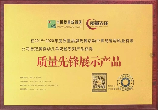 多年以來,智冠乳業(yè)堅守本心,立足有機,品質(zhì)為本,不斷創(chuàng)新,取得了一項又一項的榮譽。在2019年更是被國家市場監(jiān)督管理總局主管的中國質(zhì)量新聞網(wǎng)選入《質(zhì)量先鋒》品牌檔案!這是對智冠羊奶粉品牌和質(zhì)量的肯定。