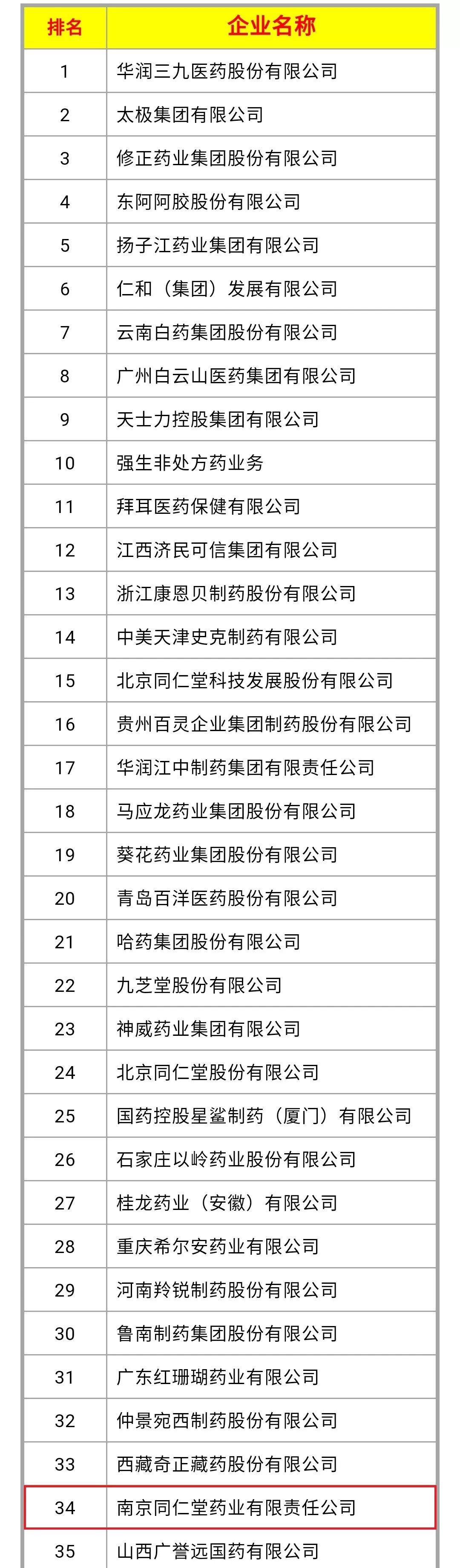 | 2019年度中國非處方藥企業(yè)及產(chǎn)品榜出爐:南京同仁堂位列第34名 |