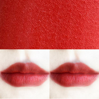絲絨質(zhì)地但是膏體上嘴居然超級順滑,啞光霧面的妝感秋冬用真的hin高級!一點也不結(jié)塊不卡紋,持久度適中,有輕微沾杯,但在可接受的范圍內(nèi),沒有反光油膩感,美翻了,買它絕對不后悔!沉悶的秋冬季節(jié)普遍穿深色的毛衣和外套,這支楓葉紅色絕對非常顯眼,但攻擊性不是很強,更不會顯老~可鹽可甜,無敵百搭!