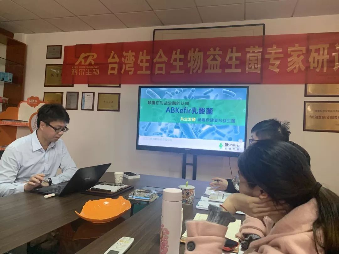 2019年12月10日,在科爾生物會(huì)議室舉行益生菌專家研討會(huì),參與人員有來(lái)自臺(tái)灣生合生物總部的專家技術(shù)團(tuán)隊(duì),生合生物揚(yáng)州分公司團(tuán)隊(duì),湖南科爾生物董事長(zhǎng)王開道先生、副總經(jīng)理王國(guó)銘先生、運(yùn)營(yíng)總監(jiān)吳剛先生以及研發(fā)團(tuán)隊(duì)、培訓(xùn)團(tuán)隊(duì)。