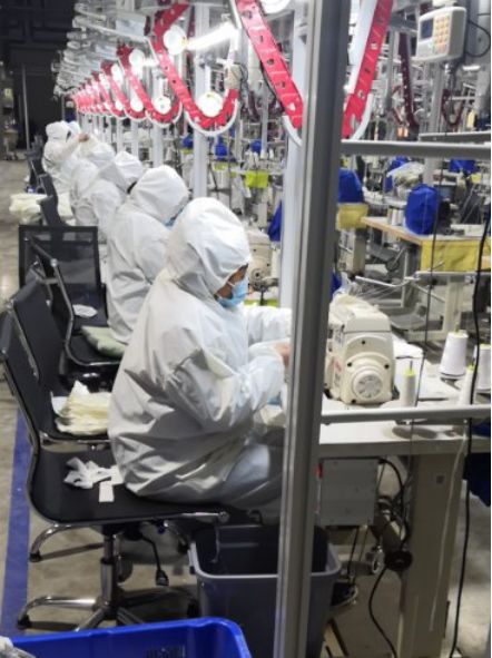 。榱吮WC防護服的生產(chǎn)環(huán)境符合要求,艾萊依改造的防護服生產(chǎn)車間)