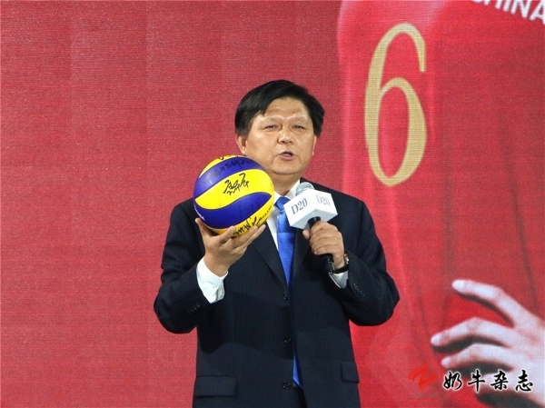 副總裁唐新仁手持郎平簽字的排球講述光明乳業(yè)的故事