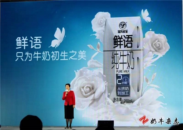 現(xiàn)代牧業(yè) 董事長兼總裁 高麗娜 生活中2小時,我們能做些什么事情呢?觀看一部電影、或是品嘗一頓晚餐。對于現(xiàn)代牧業(yè)來說,一杯牛奶從擠出到成品,已經(jīng)在這2小時內(nèi)完成了,這就是現(xiàn)代牧業(yè)的“2小時革命”。聽上去很容易,但實際上并不簡單。通過頂層設計,現(xiàn)代牧業(yè)開創(chuàng)性的在草場中建牧場,在牧場中建工廠。簡單來說,我們的牧場就在草場里,我們的工廠就在牧場里,走進現(xiàn)代牧業(yè)牧場的參觀通道,一側(cè)是擠奶大廳,奶牛在自動化轉(zhuǎn)盤上有條不紊地擠奶,另一側(cè)就是加工車間,剛擠出的鮮奶通過無菌管道從擠奶大廳,直達生產(chǎn)車間,全程0距離、0運輸,省去了所有的中間環(huán)節(jié),同時減少了預巴殺和閃蒸兩個熱處理工藝,確保在2小時內(nèi)完成全部加工,最大限度的保留了牛奶中的營養(yǎng)和生物活性物質(zhì),我們稱它為“純、真、鮮、活”的好牛奶。正是這款好產(chǎn)品達到了國際優(yōu)質(zhì)乳的標準,四次摘取世界食品品質(zhì)評鑒大會金獎,為中國的好牛奶贏得了國際食品界的諾貝爾獎!品牌源于品質(zhì),品質(zhì)源于模式。這就是數(shù)千名現(xiàn)代牧業(yè)“養(yǎng)牛人”,用十多年時間譜寫的2小時好牛奶的故事。