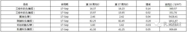 | 2017年全球大宗乳制品期貨市場(chǎng)第38周行情 |