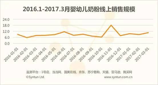 | 2017年1季度線上嬰幼兒奶粉銷售趨勢(shì)分析 |