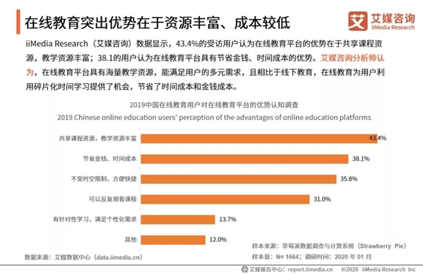 隨著大量學習需求涌入線上平臺,用戶規(guī)模短期內激增,在線教育行業(yè)將迎來重大發(fā)展。而傳統(tǒng)線下教育機構在此次突發(fā)性公共衛(wèi)生事件的影響下,正面臨著線下全面停課的巨大沖擊。同時,傳統(tǒng)教育機構不得不以線上課程轉型的方式來應對此次疫情帶來的影響,但其由于缺乏經驗和技術,面臨挑戰(zhàn)較大,尤其是中小企業(yè),或較難度過疫情寒冬。 用戶需求趨于嚴苛,在線教育開啟精細化運營時代 線上課程突破時空限制,節(jié)省時間和金錢成本。跟誰學、猿輔導等機構的大班課模式覆蓋人群數量可觀,但存在體驗性、互動性較弱的問題;掌門教育等機構的1對1模式能夠提供個性化教學和接近于線下的互動感,但對網絡并發(fā)的穩(wěn)定性要求高。 隨著認知的增強,如今的在線教育用戶對產品的要求正在逐漸變得嚴苛,在線教育企業(yè)應該強化自身精細化運營策略,以用戶需求為核心,注重全面提升自身實力,保證課程質量,優(yōu)化用戶體驗。 iiMediaResearch(艾媒咨詢)數據顯示,43.4%的受訪用戶認為在線教育平臺的優(yōu)勢在于共享課程資源,教學資源豐富;但同時,用戶對師資質量、課程質量依舊存在顧慮,偏好選擇知名的在線教育品牌。艾媒咨詢分析師認為,在線教育平臺具有海量教學資源,能滿足用戶的多元需求,但在提供海量教育資源的同時,更應嚴格把控教師質量、提高課程質量、完善用戶保障體系。