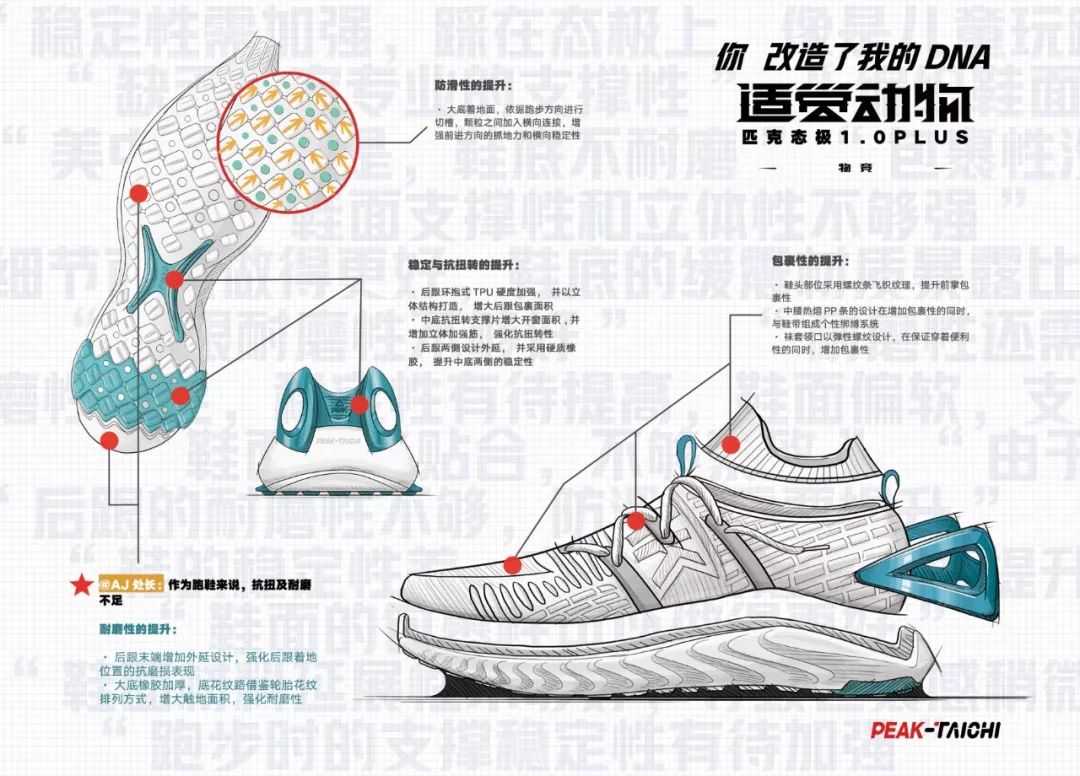 2019年5月,匹克態(tài)極發(fā)動1.0 Plus“差評”戰(zhàn)役,粉絲說設(shè)計很丑,那就提升顏值。粉絲說不耐磨、防滑不好和支撐不夠,那就功能上全面進化。