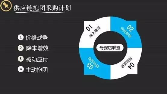 每個(gè)母嬰店的類(lèi)目都有側(cè)重,奶粉紙尿褲屬于引流的產(chǎn)品,消費(fèi)頻次高一些,其他屬于粘性產(chǎn)品。很多三四線(xiàn)城市的母嬰店奶粉的比例達(dá)到50%-60%,未來(lái)是不是保持這個(gè)品類(lèi)比例?因?yàn)槲磥?lái)可能賣(mài)的產(chǎn)品越來(lái)越少了,母嬰店是要轉(zhuǎn)型還是根據(jù)消費(fèi)者的特點(diǎn)改變自己產(chǎn)品的類(lèi)目? 同一緯度競(jìng)爭(zhēng)是好資源的戰(zhàn)爭(zhēng),錯(cuò)位競(jìng)爭(zhēng)更多的干自己擅長(zhǎng)的事。 2、供應(yīng)鏈抱團(tuán)采購(gòu)計(jì)劃 很多母嬰店單打獨(dú)斗,價(jià)格沒(méi)有優(yōu)勢(shì),沒(méi)有穩(wěn)定的貨源,得不到好的產(chǎn)品信息,容易被欺負(fù)。