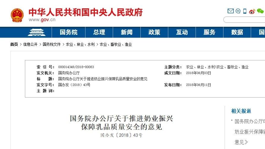 | 【重磅】國(guó)務(wù)院辦公廳印發(fā)《關(guān)于推進(jìn)奶業(yè)振興保障乳品質(zhì)量安全的意見(jiàn)》 |