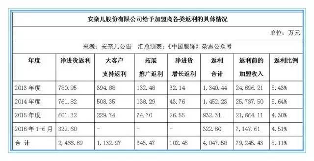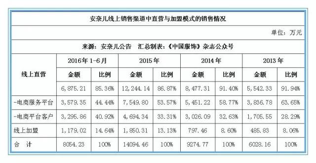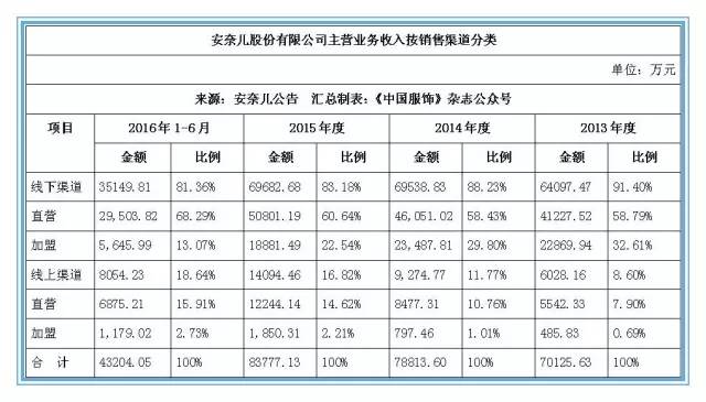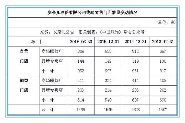財(cái)報(bào)顯示,2013-2015年安奈兒的營(yíng)業(yè)收入分別為7.06億元、7.93億元和8.40億元,凈利潤(rùn)分別為5611.51萬(wàn)元、7896.89萬(wàn)元和7090.86萬(wàn)元,營(yíng)業(yè)收入及凈利潤(rùn)基本呈上升趨勢(shì)。 至 2016 年 6 月末,安奈兒已在全國(guó) 31 個(gè)省、自治區(qū)及直轄市建立了 1466 家門(mén)店,其中直營(yíng)店 952 家,加盟店 514 家;同時(shí),公司在淘寶、天貓、唯品會(huì)、京東等多個(gè)國(guó)內(nèi)知名電子商務(wù)平臺(tái)建立了網(wǎng)絡(luò)銷(xiāo)售渠道。 光大證券分析師李婕表示,就服裝板塊而言,隨著二胎政策的放開(kāi),最直接受益的子行業(yè)無(wú)疑是童裝行業(yè),但目前童裝行業(yè)尚無(wú)獨(dú)立上市品牌,第一大品牌巴拉巴拉歸于森馬服飾旗下。就目前來(lái)看,童裝行業(yè)仍處于成長(zhǎng)期:一方面,童裝品牌忠誠(chéng)度已逐步建立,另一方面,行業(yè)集中度分散,龍頭品牌巴拉巴拉市場(chǎng)份額也僅在3%左右,未來(lái)仍有提升空間。 安奈兒也表示,未來(lái)將會(huì)通過(guò)構(gòu)建柔性供應(yīng)鏈、打造明星單品,提高公司盈利能力;持續(xù)拓展和優(yōu)化實(shí)體門(mén)店,積極發(fā)展電商和O2O營(yíng)運(yùn)模式,鞏固和提高公司在實(shí)體店及電商渠道的市場(chǎng)占有率;進(jìn)一步完善信息化系統(tǒng)的應(yīng)用,提高公司在設(shè)計(jì)研發(fā)、供應(yīng)鏈管理及渠道建設(shè)等方面的綜合能力。 安奈兒希望,未來(lái)進(jìn)一步擴(kuò)大直營(yíng)店分布,本次募集資金擬投資的營(yíng)銷(xiāo)中心建設(shè)項(xiàng)目將建設(shè)295家直營(yíng)門(mén)店,其中包括212家商場(chǎng)聯(lián)營(yíng)店和83家品牌專賣(mài)店。公司將以實(shí)施營(yíng)銷(xiāo)中心建設(shè)項(xiàng)目為契機(jī),在優(yōu)化商場(chǎng)聯(lián)營(yíng)店的布局和提升其單店效益的同時(shí),拓展購(gòu)物中心店等有助于提升品牌形象的專賣(mài)店,并通過(guò)購(gòu)置和租賃相結(jié)合的方式獲得優(yōu)質(zhì)商圈的渠道資源,進(jìn)一步提高直營(yíng)門(mén)店占比,完善全國(guó)銷(xiāo)售網(wǎng)絡(luò)布局。
