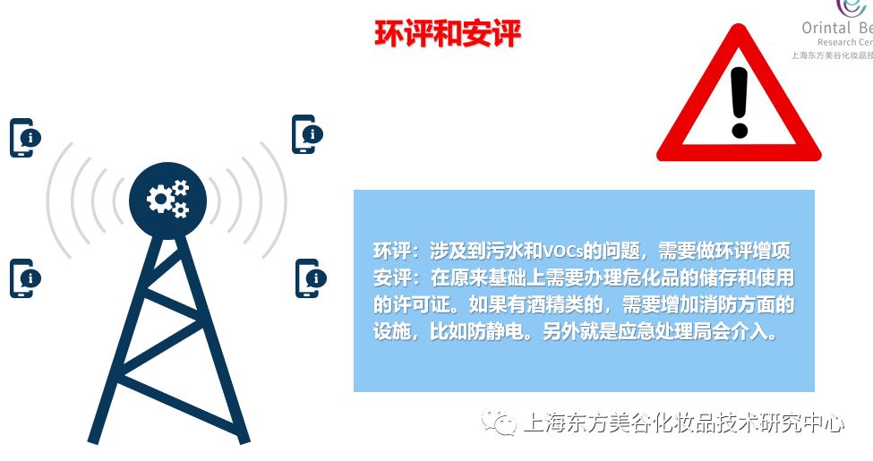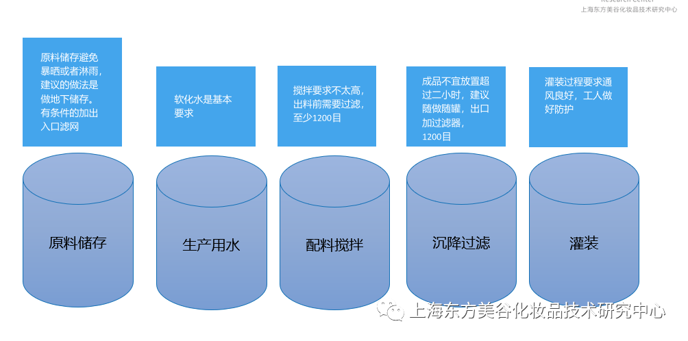 3、委托生產(chǎn)企業(yè)注意事項:營業(yè)執(zhí)照經(jīng)營范圍、代加工企業(yè)資質(zhì)、上市產(chǎn)品提前準備時間(4-6個月) 4、產(chǎn)品宣稱應(yīng)有理化和毒理試驗檢驗依據(jù)。 二、裝備工藝 1、獨立的廠房: 根據(jù)所申請的許可證的產(chǎn)品劑型不同需要建立不同廠房,比如:消毒粉需要防爆車間;酒精抑菌啫喱需要防爆凈化車間。生產(chǎn)車間凈化各地要求有些不一,上海東方美谷化妝品技術(shù)研究中心依上海地區(qū)為例:用于粘膜的產(chǎn)品10萬級、用于皮膚的產(chǎn)品30萬級、用于物體表面消毒一般潔凈廠房即可。